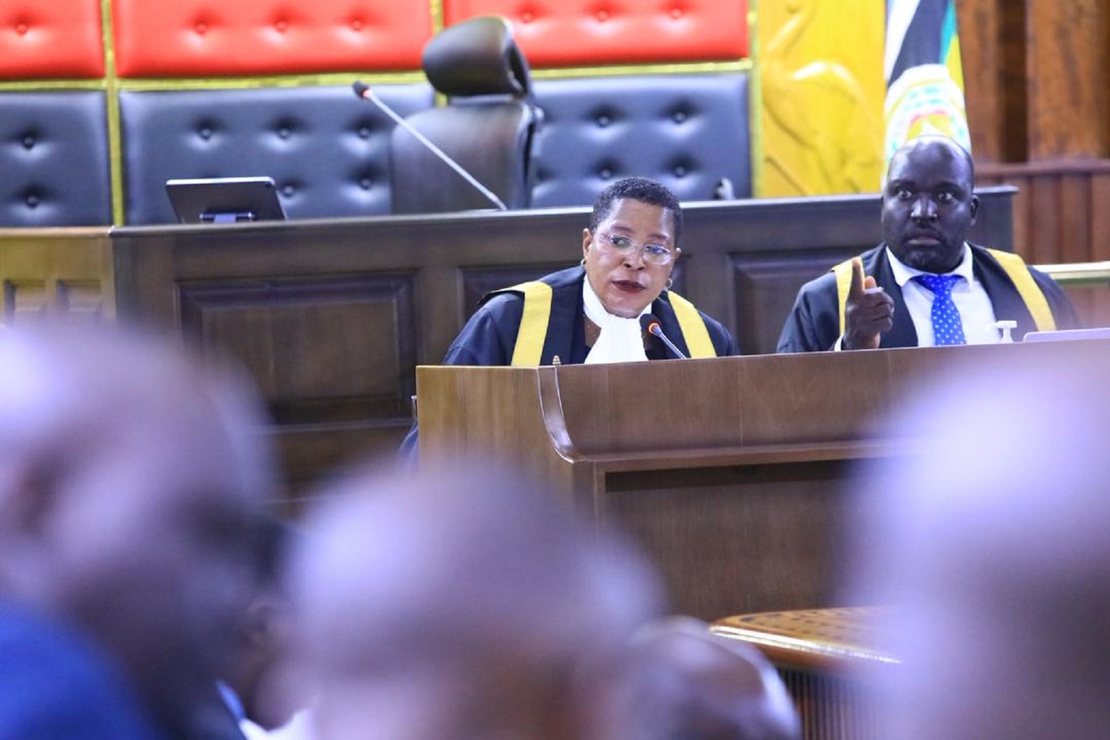 Speaker Anita Among (L) and a Clerk-at-Table during the committee stage where the Bill was debated clause by clause
