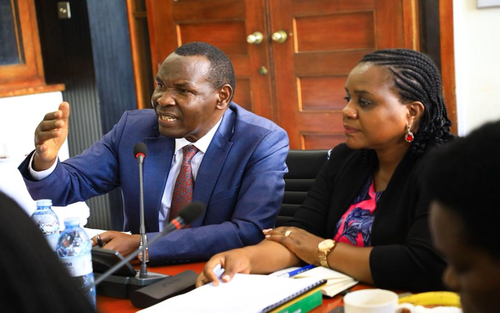Committee Chairperson, Hon. Byarugaba (L) with Hon. Natumanya on his left